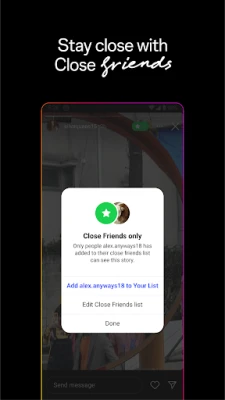 - Start group chats and share unfiltered moments with your Close Friends.
